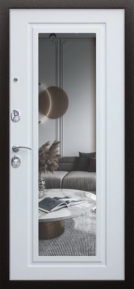 Надежная входная Дверь Комфорт с зеркалом премиум класса по цене 30 650 руб. Большая толщина стали защитит от проникновения в ваш дом, квартиру или коттедж. Используется очень качественная фурнитура: замки, цилиндры, ручки, защелки. Покрытие и отделка двери изготовлено под внимательным контролем производителя. Дверь имеет долгий срок службы и гарантию.