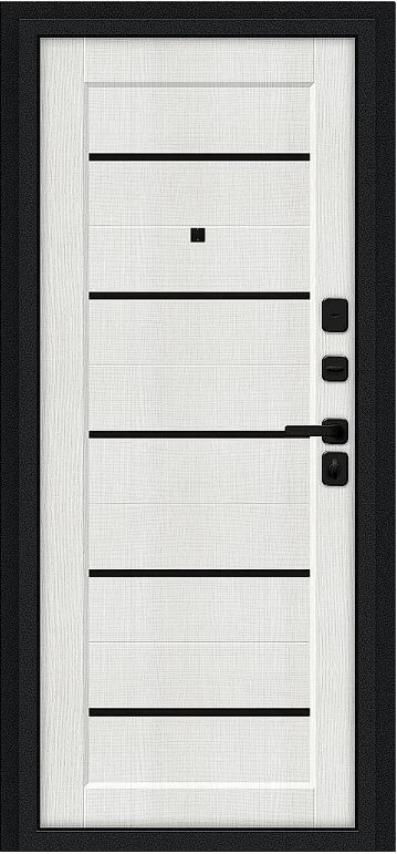 Надежная входная Дверь Браво Борн/SBlack Букле черное/Bianco Melinga премиум класса по цене 33 650 руб. Большая толщина стали защитит от проникновения в ваш дом, квартиру или коттедж. Используется очень качественная фурнитура: замки, цилиндры, ручки, защелки. Покрытие и отделка двери изготовлено под внимательным контролем производителя. Дверь имеет долгий срок службы и гарантию.