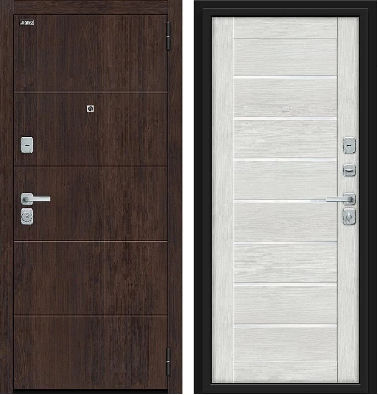 Надежная входная Дверь Браво Прайм/BChrome Almon/Bianco Melinga премиум класса по цене 42 000 руб. Большая толщина стали защитит от проникновения в ваш дом, квартиру или коттедж. Используется очень качественная фурнитура: замки, цилиндры, ручки, защелки. Покрытие и отделка двери изготовлено под внимательным контролем производителя. Дверь имеет долгий срок службы и гарантию.