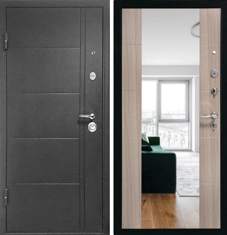Надежная входная Дверь Эверест Зеркало Сандал Серый премиум класса по цене 35 930 руб. Большая толщина стали защитит от проникновения в ваш дом, квартиру или коттедж. Используется очень качественная фурнитура: замки, цилиндры, ручки, защелки. Покрытие и отделка двери изготовлено под внимательным контролем производителя. Дверь имеет долгий срок службы и гарантию.